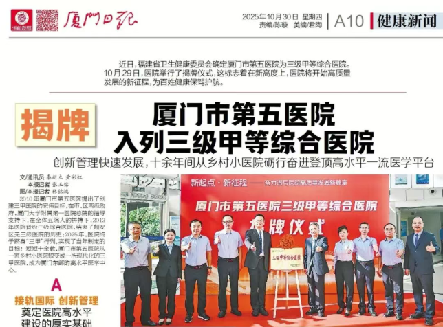 《厦门日报》:揭牌!九州娱乐app-九州app下载 入列三级甲等综合九州娱乐app