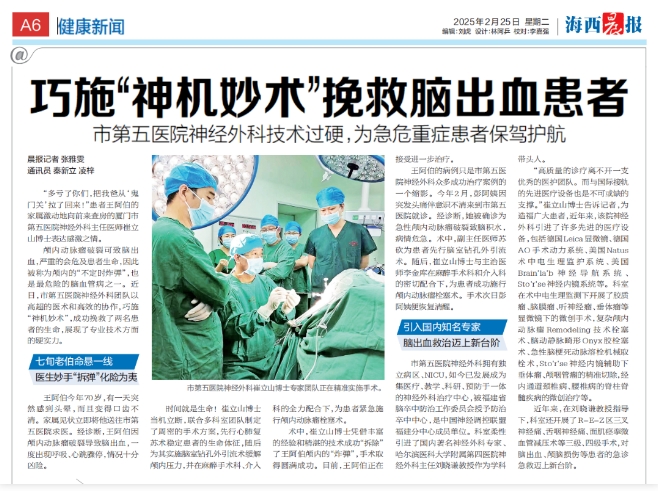 《海西晨报》:巧施“神机妙术” 挽救脑出血患者