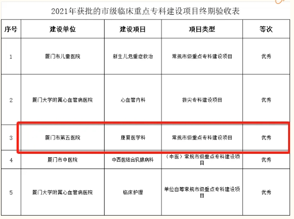 终期验收!厦门五院康复医学科再传喜讯