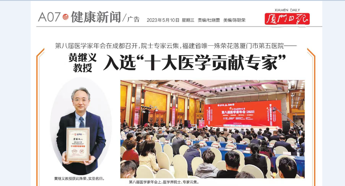 全省唯一!黄继义教授入选“十大医学贡献专家