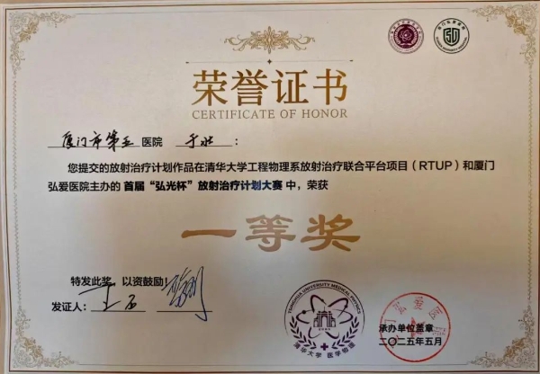 喜报!厦门五院放射治疗科物理师于壮荣获全国放疗计划大赛冠军