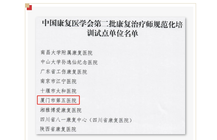 闽西南唯一!九州娱乐app-九州app下载 获批中国康复医学会康复治疗师规培试点单位